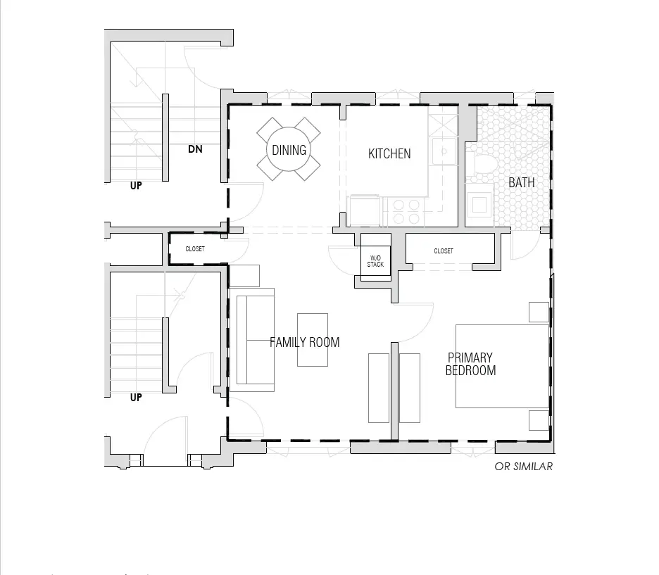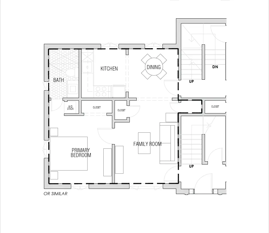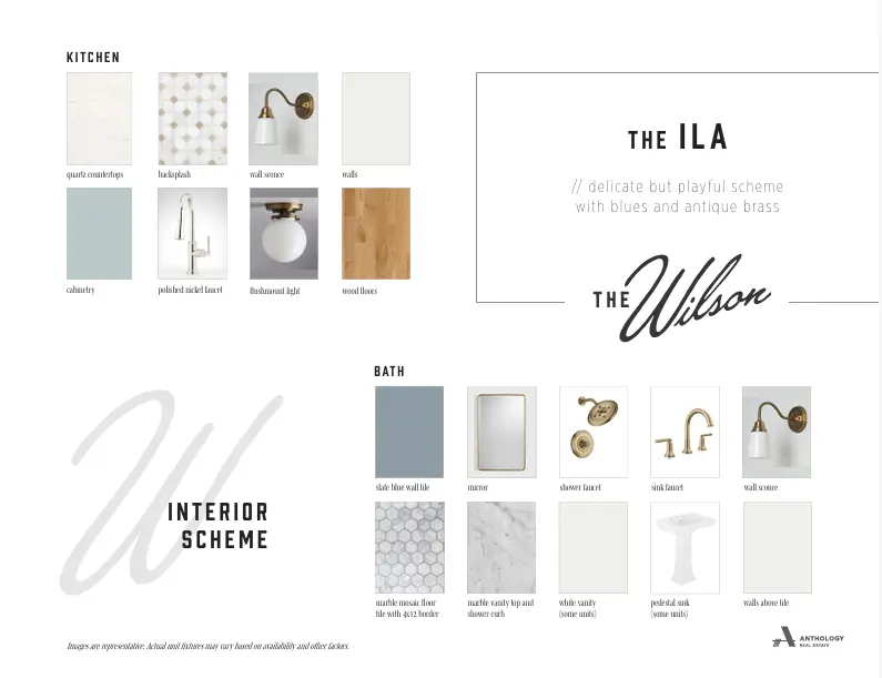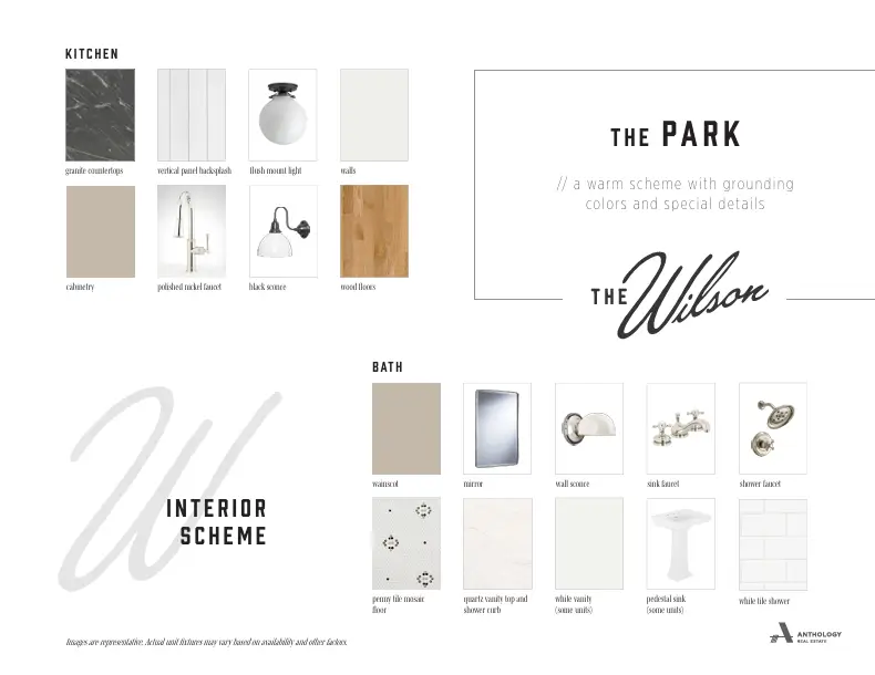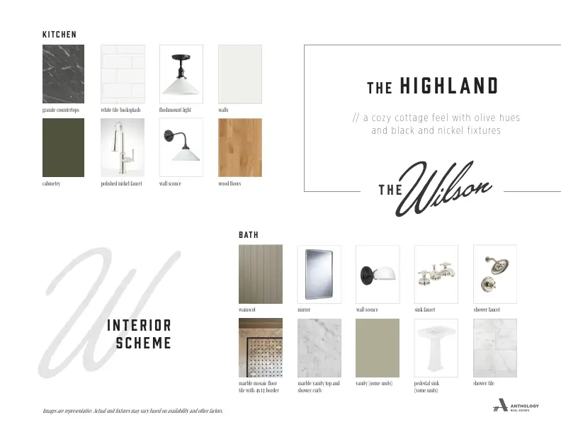 The Highland has cozy cottage feel with olive hues and black and nickel features.