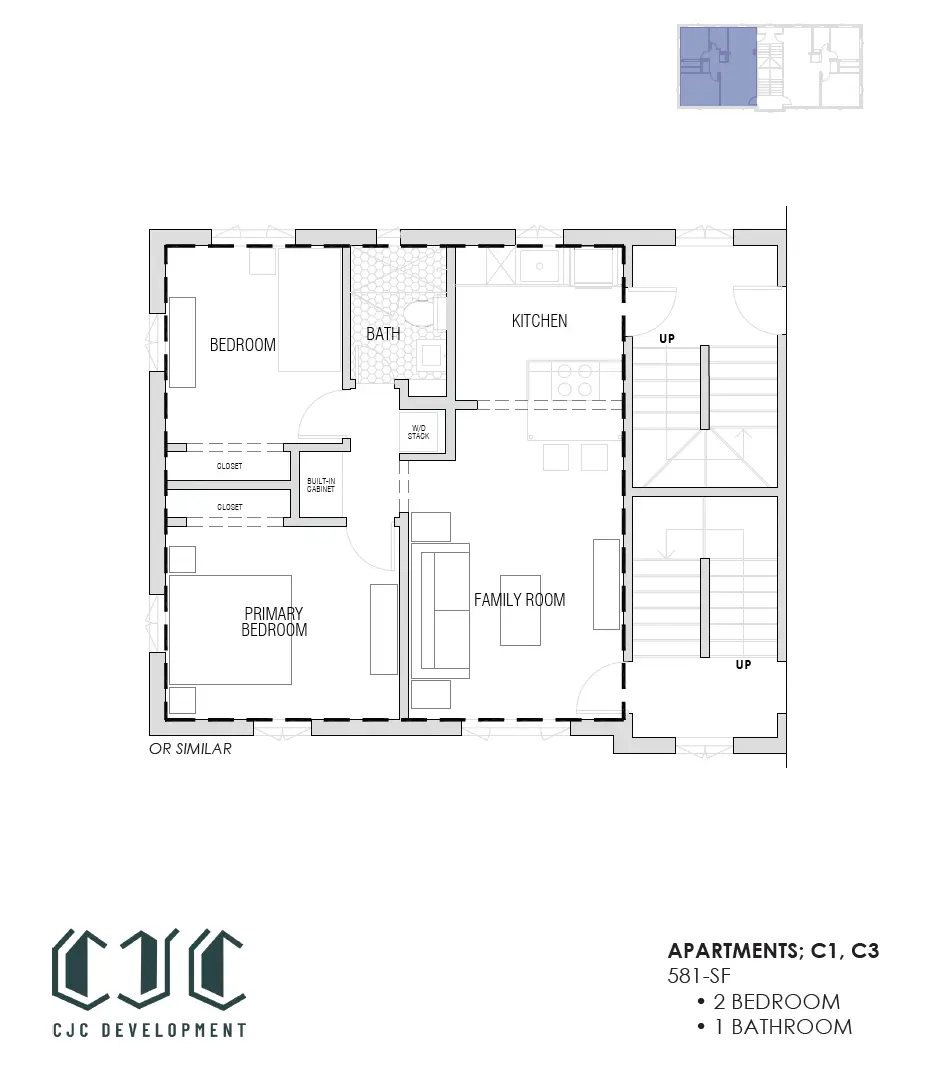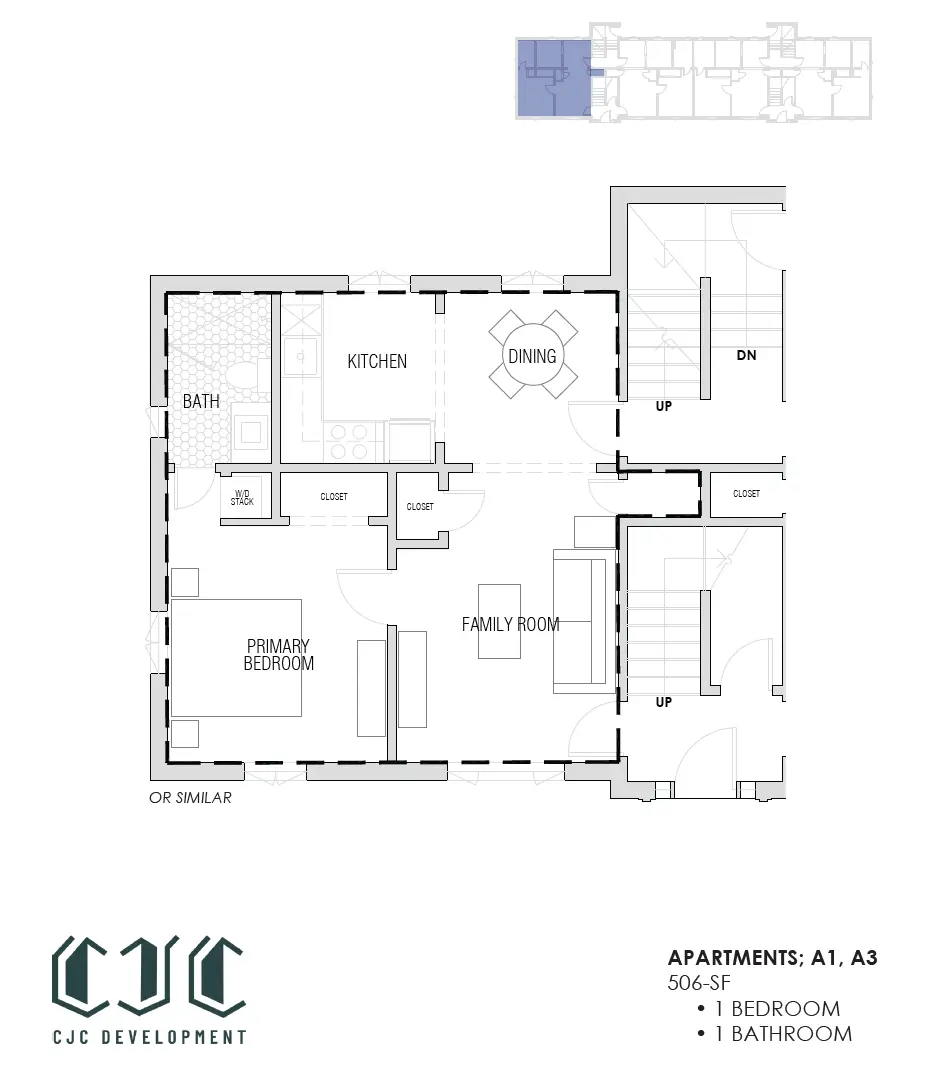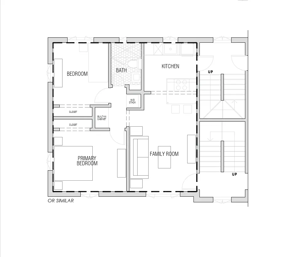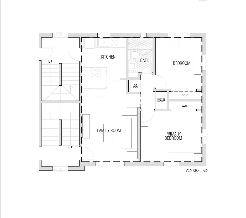 The Highland has cozy cottage feel with olive hues and black and nickel features.